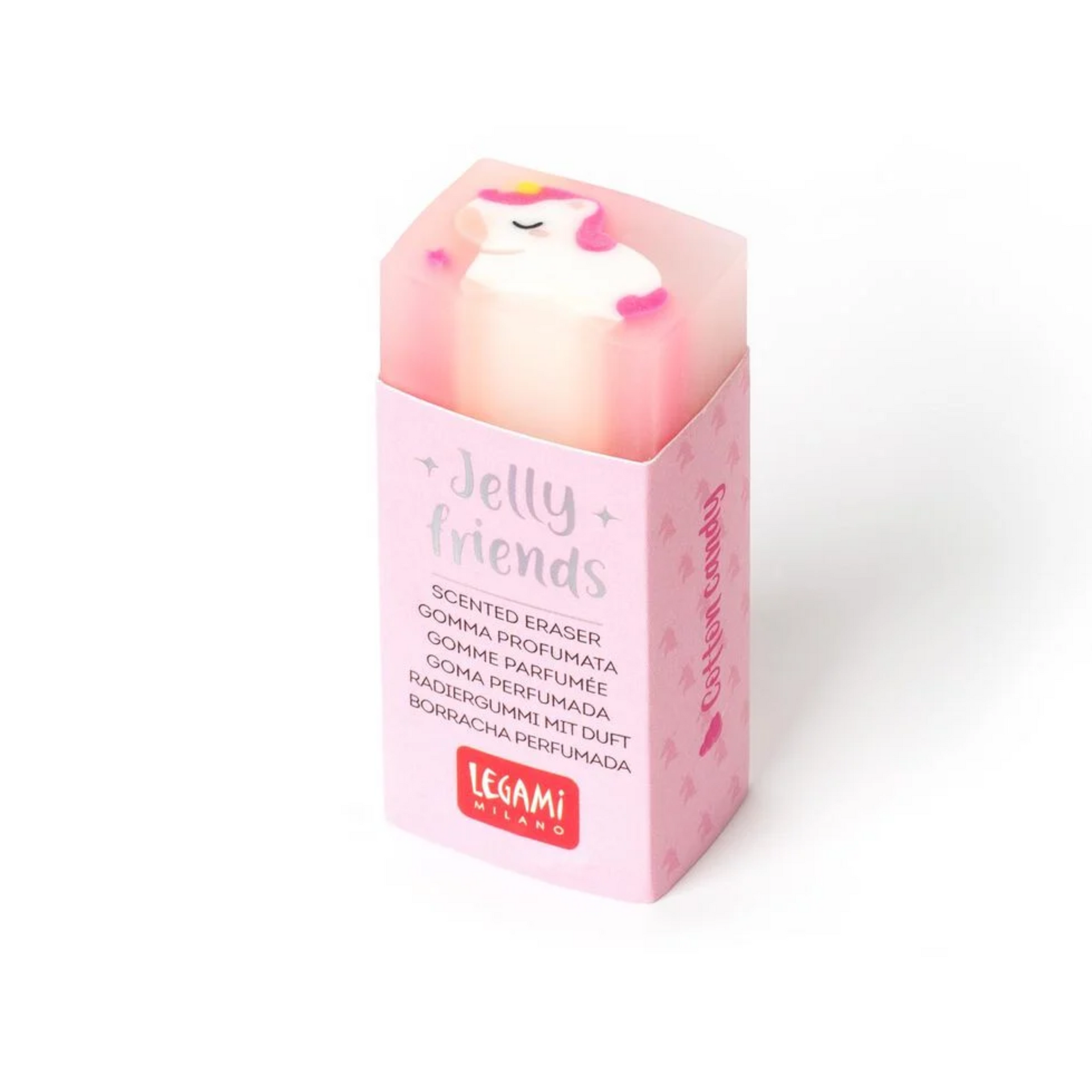 \n \nGli errori non sono mai stati così golosi: una volta che la gomma profumata Jelly Friends allo zucchero filato di Legami sarà entrata nel tuo astuccio, diventerai ghiotto di refusi da eliminare con la sua cancellatura morbida e pulita. \n \n